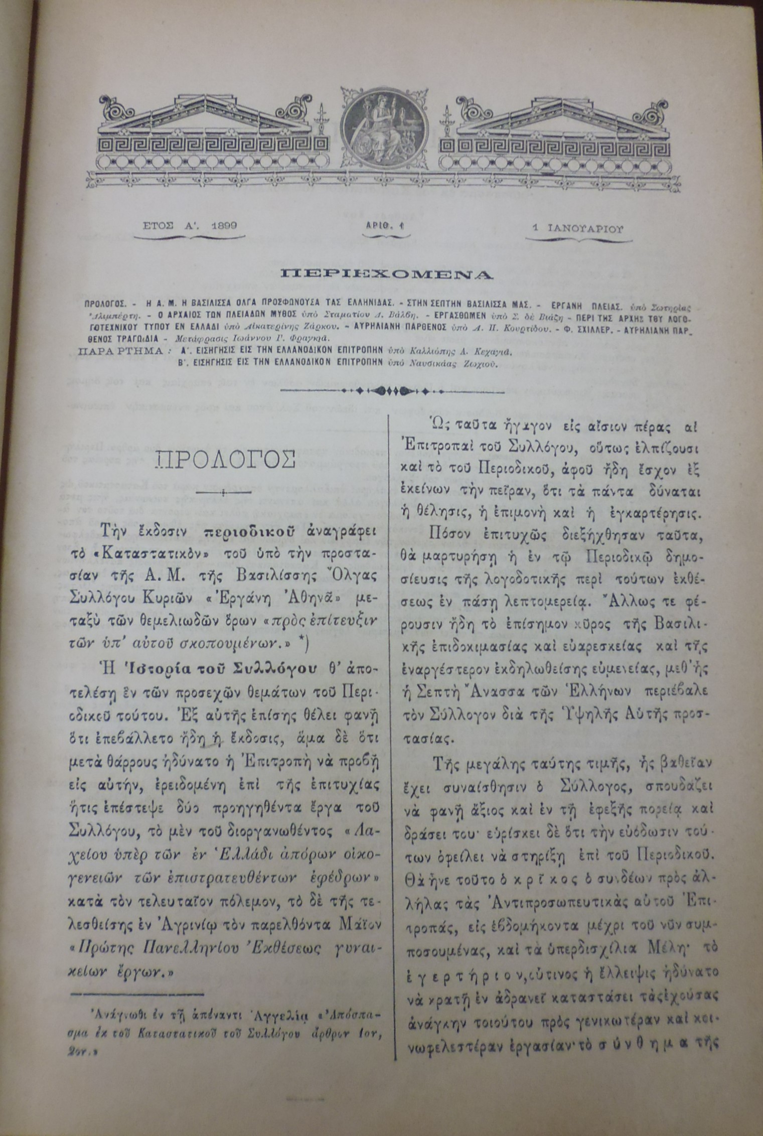 ΠΛΕΙΑΣ ΄Ετος Α΄, 1899, Περιοδικόν του Συλλόγου Κυριών «ΕΡΓΑΝΗ ΑΘΗΝΑ». Εκδίδεται τρις του μηνός