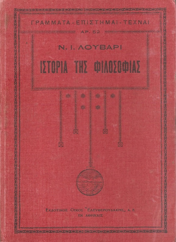 ΛΟΥΒΑΡΙΣ Ν.Ι., Ιστορία της Φιλοσοφίας τόμοι Α΄+Β΄. Εν Αθήναις 1933 Α΄ έκδοση, 8ο, σελ 228+277. (Βιομηχανική βιβλιοδεσία, μικρή φθορά στην ράχη του Α΄ τόμου)