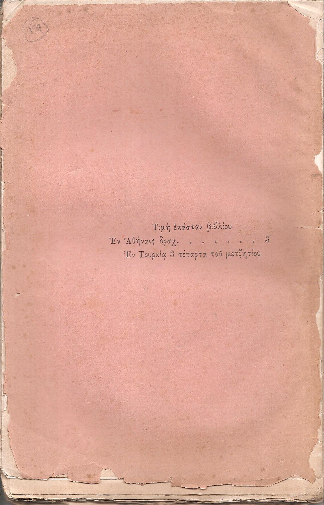 ΜΟΥΣΑΙΟΣ Μ.Ι., Βατταρισμοί ήτοι Λεξιλόγιον της Λειβησιανής διαλέκτου μετ’ εγχωρίων παροιμιών εν τέλει. Εν Αθήναις, ΕΚ ΤΟΥ ΤΥΠΟΓΡΑΦΕΙΟΥ ΠΑΡΝΑΣΣΟΥ, 1884, 8ο, σελ. κστ΄+174+1χ.α.+1λ (λείπει μεγάλο κομμάτι από το εμπροσθόφυλλο, άκοπα φύλλα, ΗΛΙΟΥ-ΠΟΛΕΜΗ αρ. 1884.97)