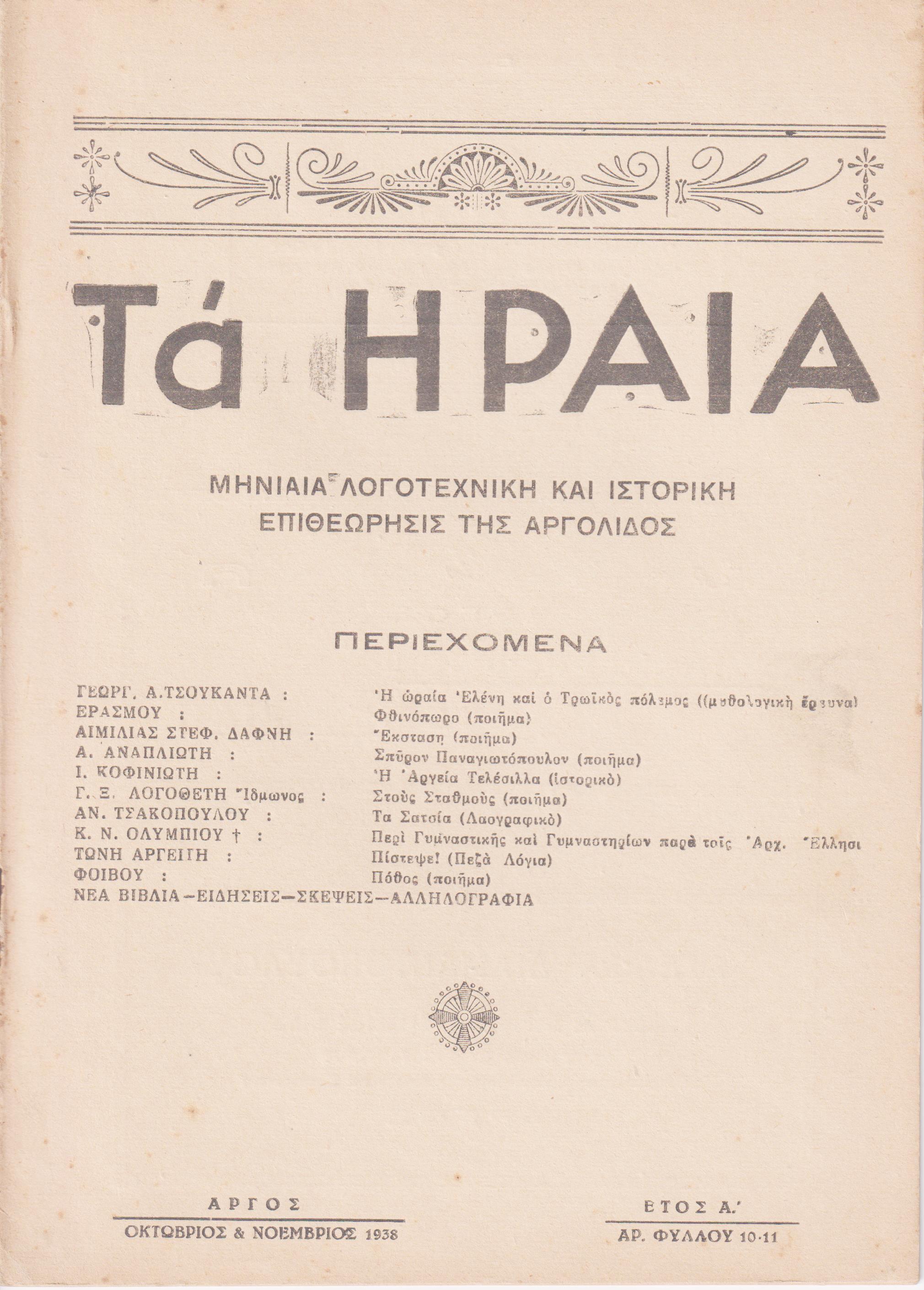 ΗΡΑΙΑ [ΤΑ] 1937-1940, Μηνιαία Λογοτεχνική και Ιστορική Επιθεώρησις της Αργολίδος