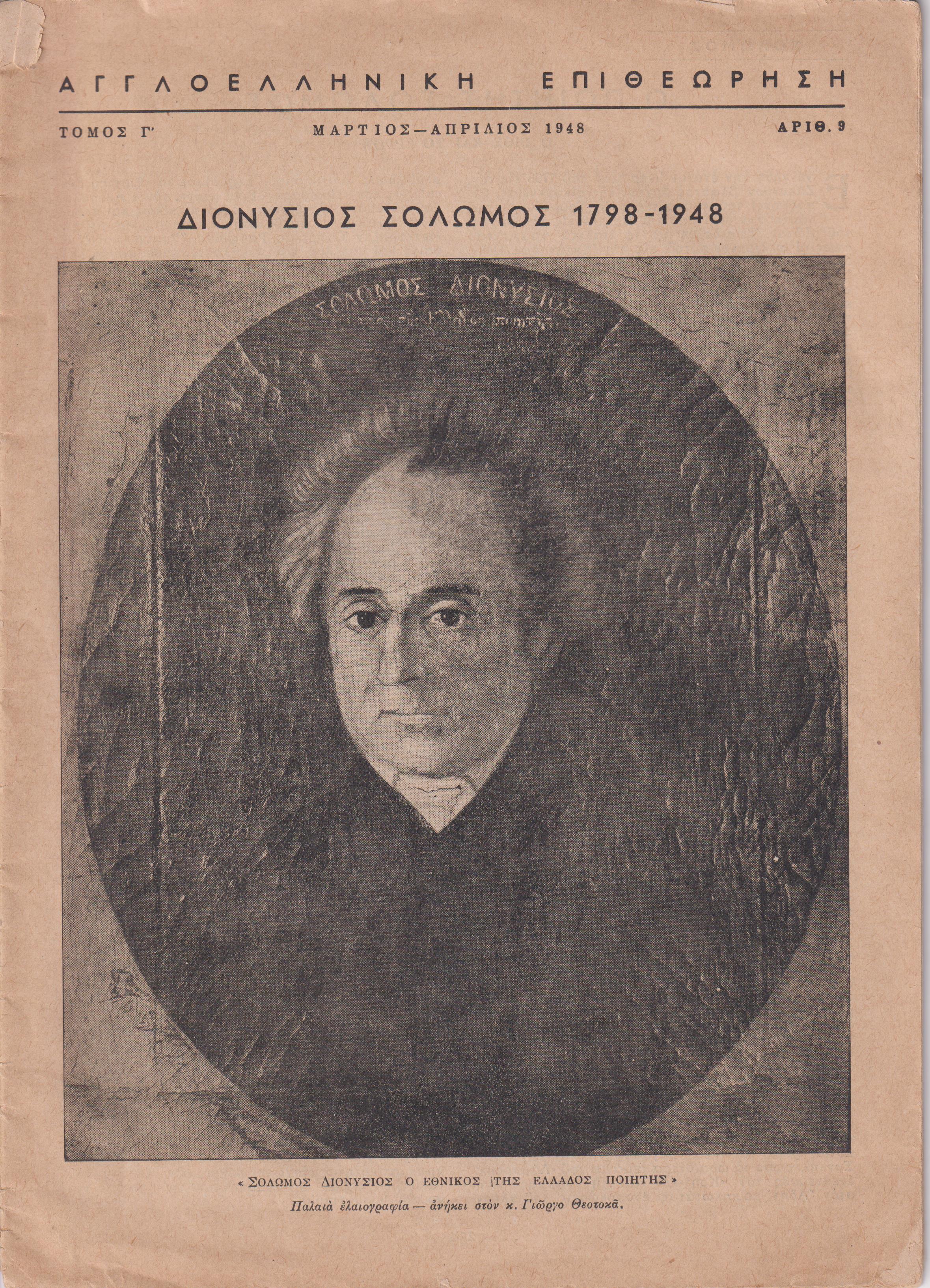 ΑΓΓΛΟΕΛΛΗΝΙΚΗ ΕΠΙΘΕΩΡΗΣΗ Τόμος Γ΄ , αρ. 9[Μάρτιος-Απρίλιος 1948],Διονύσιος Σολωμός 1798-1948