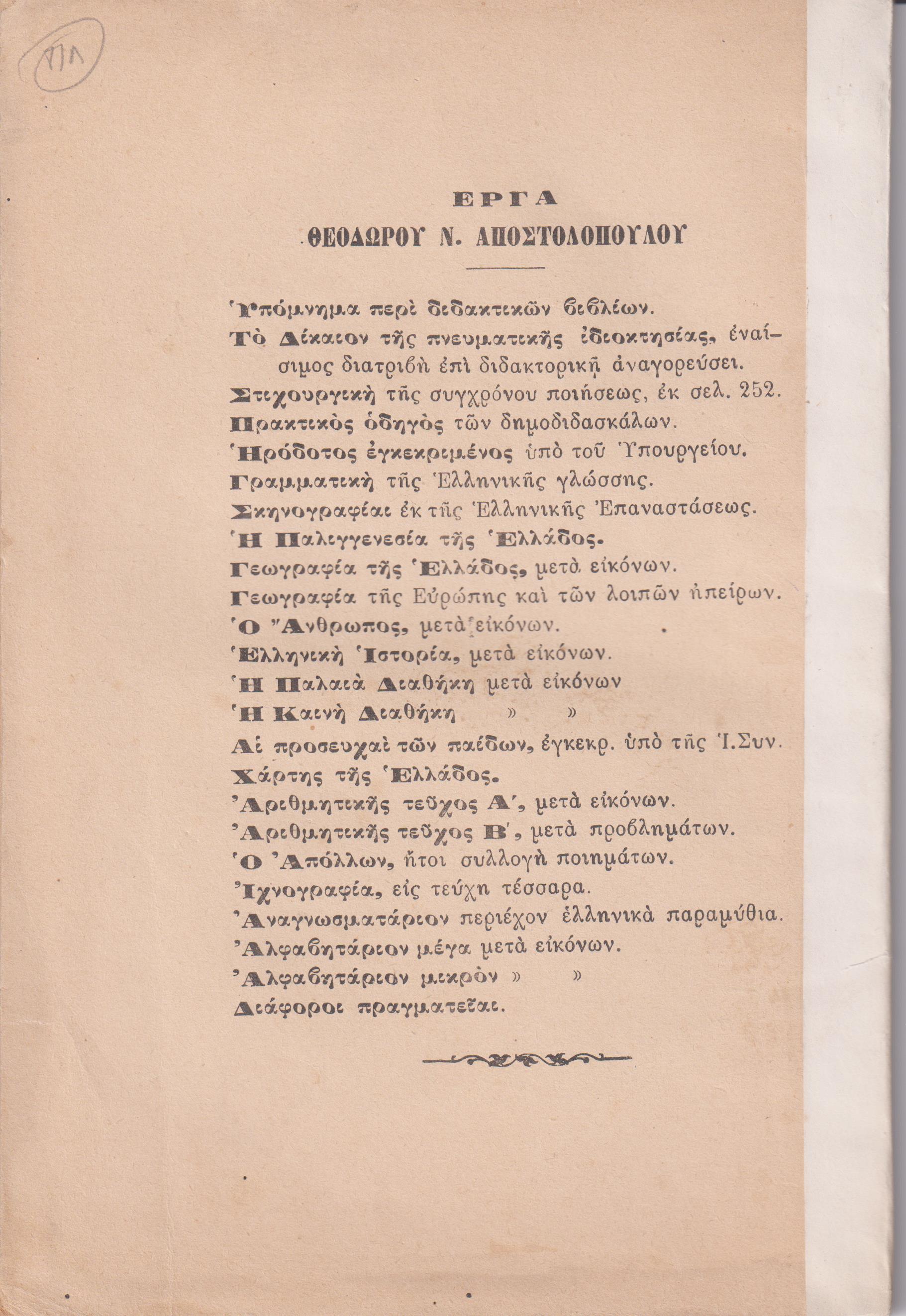 ![Υπόμνημα περί διδακτικών βιβλίων συνταχθέν μεν υπό Θ.Ν.Αποστολοπούλου ως Εισηγητού, υποβληθέν δε τω Ππ[sic]ρωθυπουργώ κ. Χ. Τρικούπη](/datafiles/18789-2s.jpg)