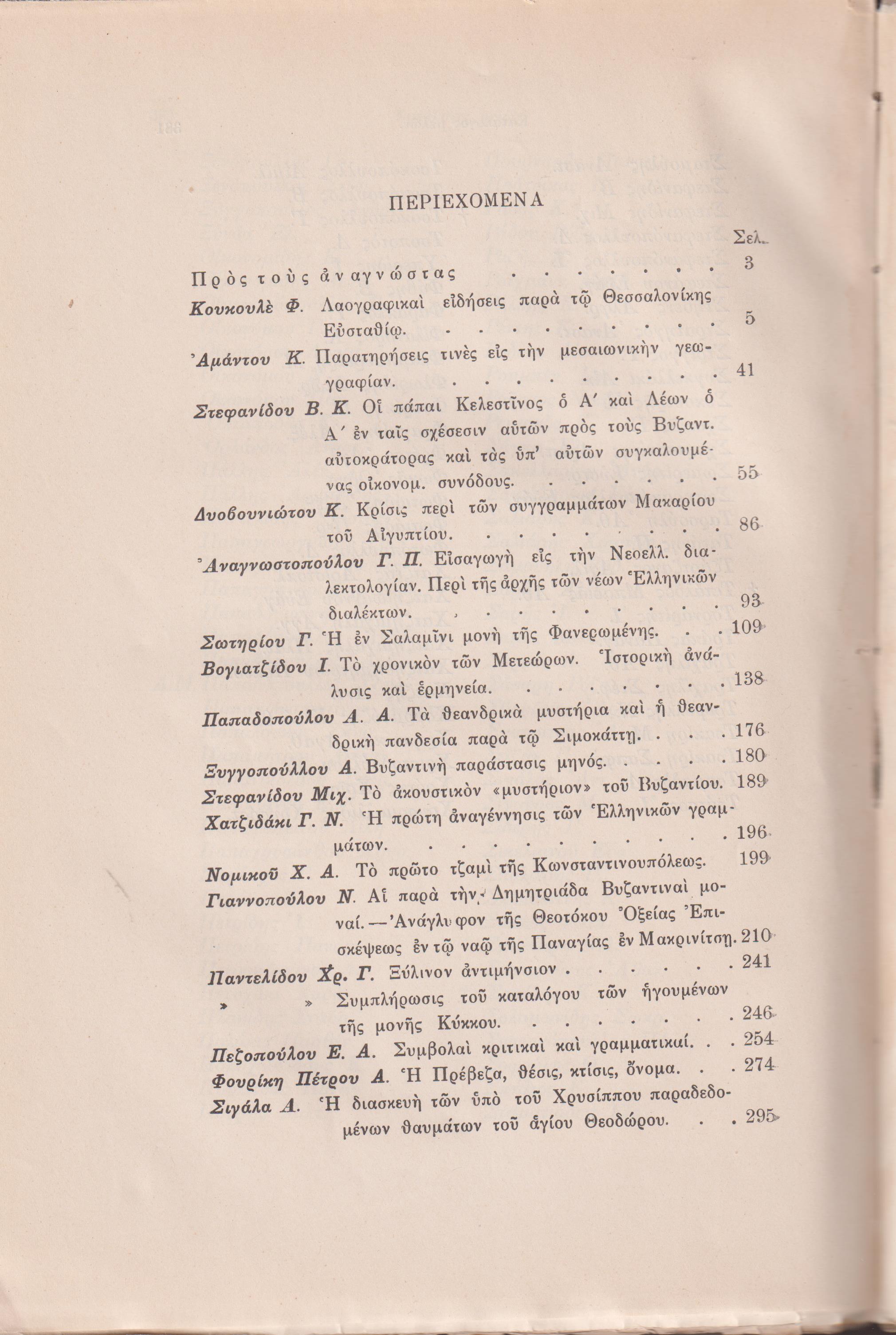 ΕΠΕΤΗΡΙΣ ΕΤΑΙΡΕΙΑΣ ΒΥΖΑΝΤΙΝΩΝ ΣΠΟΥΔΩΝ, έτη Α΄+Β΄. Αθήναι 1924-1925, 8ο, σελ. 383+1λ+382+2λ (τα δύο έτη δεμένα σ’ ένα τόμο λινόδετο με τα εξώφυλλά τους, τα φύλλα άκοπα, βιβλιοδεσία λίγο ταλαιπωρημένη)